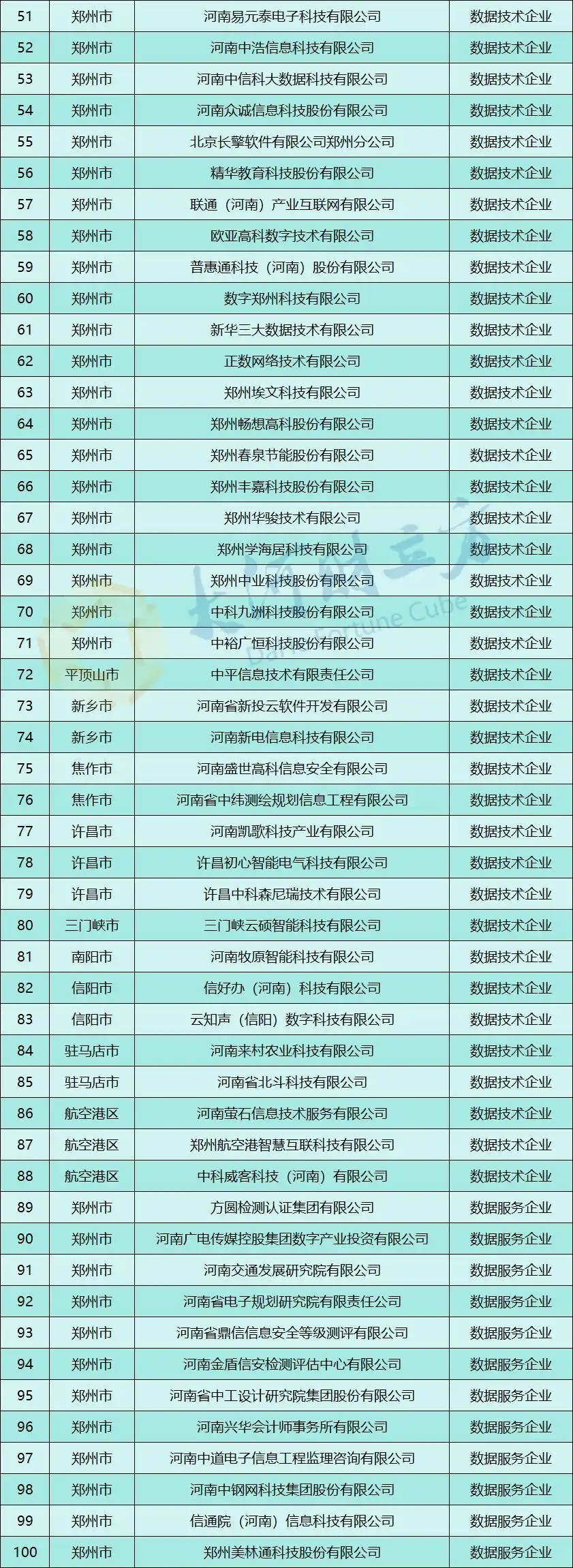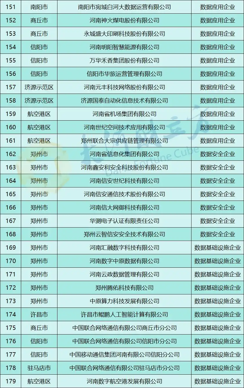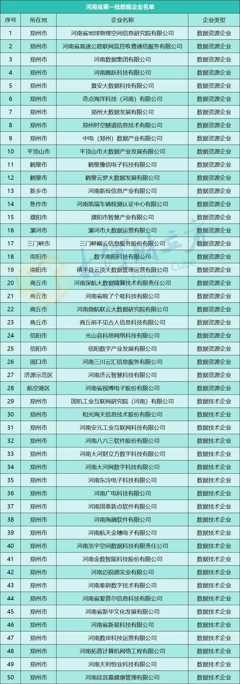 名单显示,河南大河财立方数字科技有限公司作为数据技术企业入选。